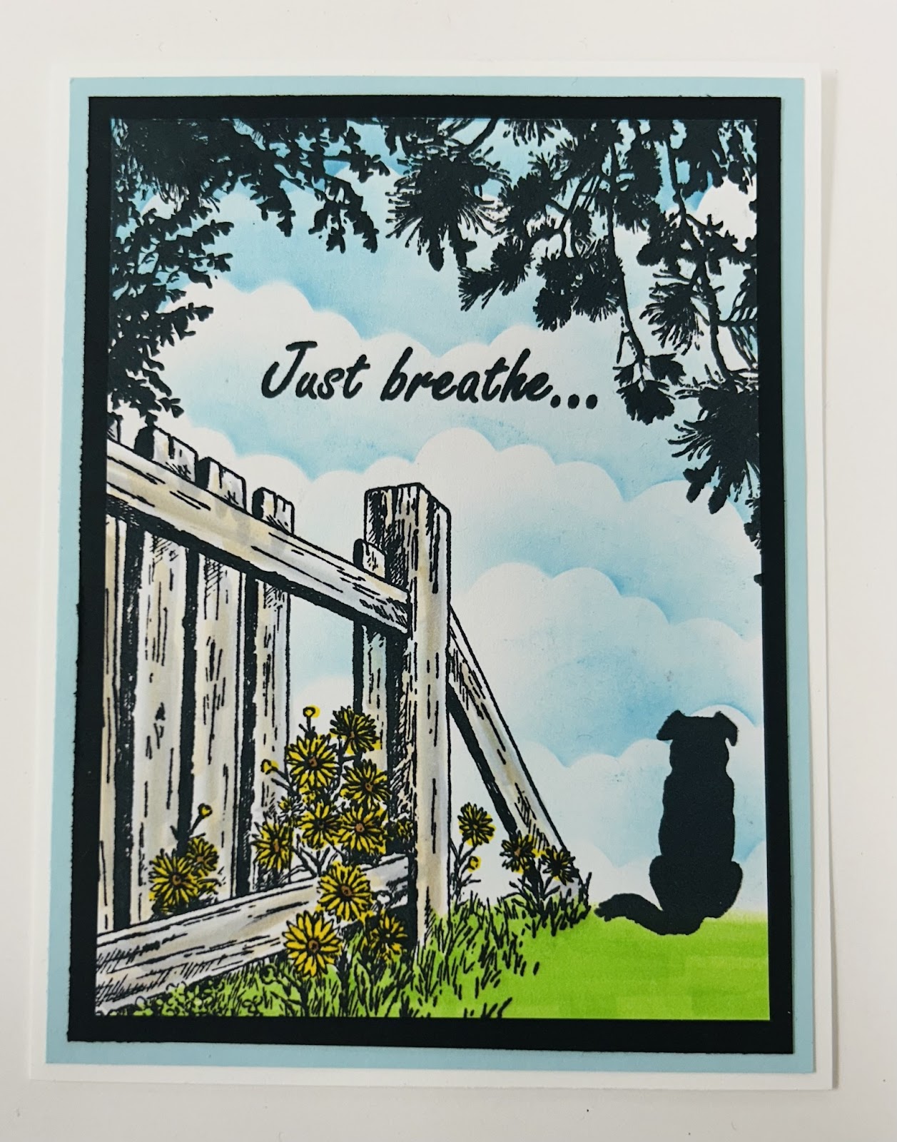 Hello, Friends. I am sharing cards today by Blue Knight Rubber Stamps called Fence and Daisies. This set comes with 2 images, the main fence image and a sentiment.
